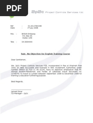 Non Objection Letter No Objection Letter For Travelling